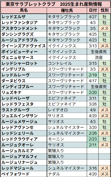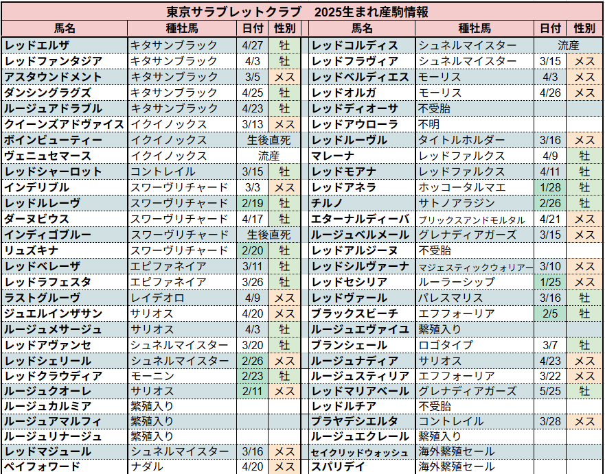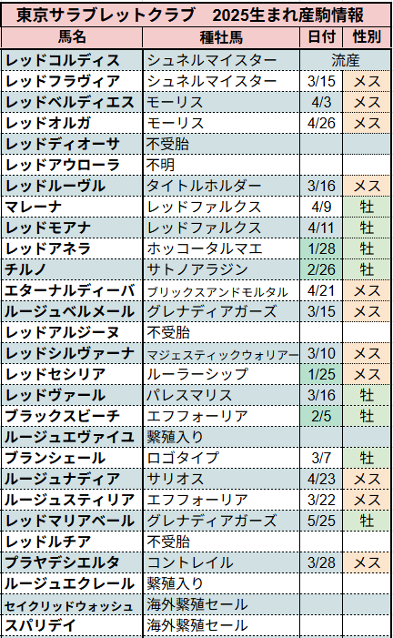 ⇩2025年種付け情報まとめになります